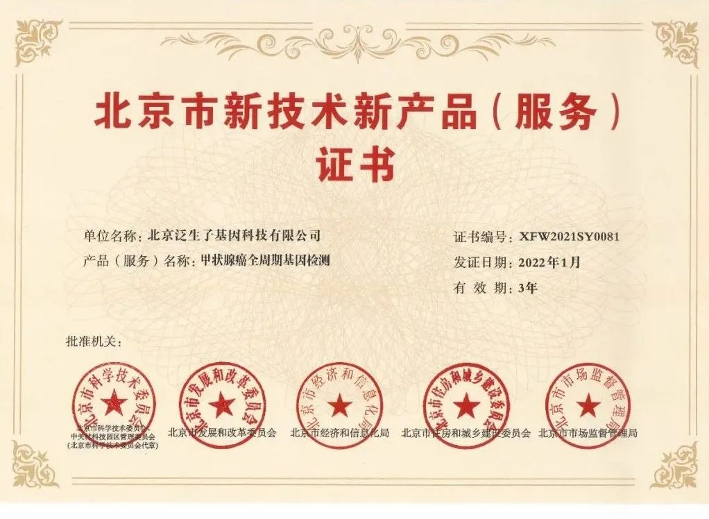 近日,泛生子宣布,其自主研發(fā)的甲狀腺癌全周期基因檢測、肉瘤全體系基因檢測同時獲得“北京市新技術(shù)新產(chǎn)品(服務(wù))”認(rèn)定證書。至此,泛生子共有11項(xiàng)檢測產(chǎn)品及服務(wù)獲該權(quán)威認(rèn)可,覆蓋IVD產(chǎn)品及LDT服務(wù)兩種業(yè)務(wù)模式。